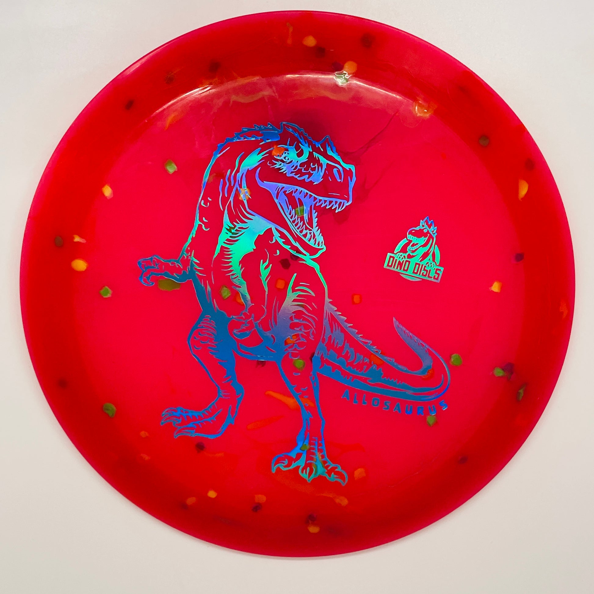 The new Allosaurus was added to the Dino Discs lineup in the summer of 2023. As a "speed 12" disc, it will require more armspeed to get maximum distance results. For youngsters, it will test their power, or it can be a disc that they grow into. For other players who typically struggle with distance drivers, the Allosaurus is a great lightweight choice with a lot of glide that can build confidence.