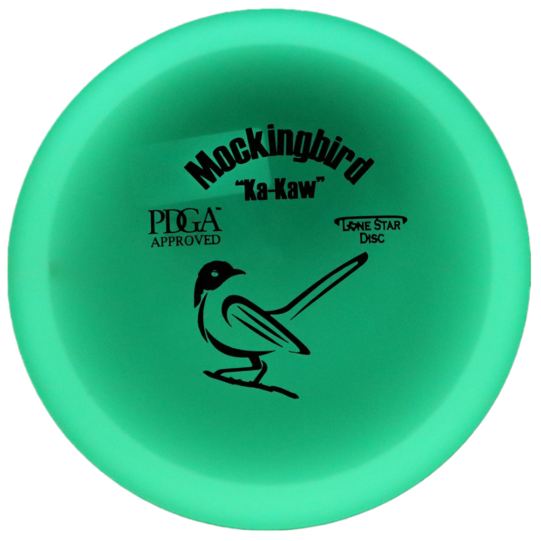 The Mockingbird is our understable fairway driver. When you're in a situation where control is needed, KA-KA! The Mockingbird should be what you reach for!With a smooth throw, the Mockingbird will take a straight flight. Give it hyzer, and it will hold it. Put a little power behind it, and it will turn hard and finish dependably.The Mockingbird has a versatility to it that will work will for players of all skill levels. 7 / 5 / -2 / 1