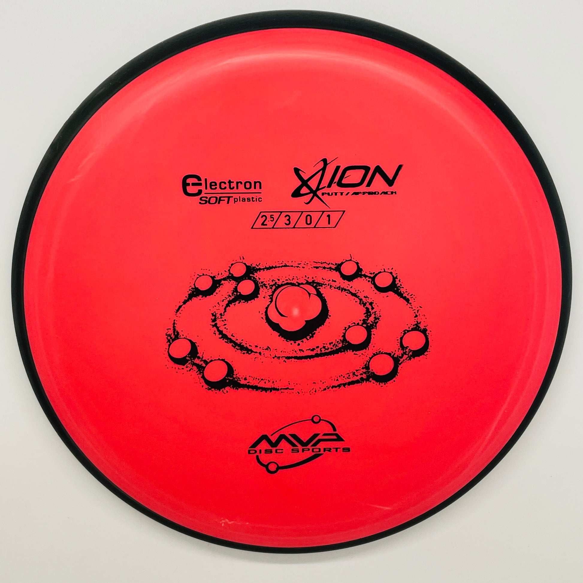 The Ion is one of MVP's high glide discs with just a small amount of overstable fade at the end of the flight. These characteristics make this a great long-range putter for disc golfers of all skill levels. This disc is available in each of MVP's plastics, including their Eclipse plastic, which glows in the dark. It is also available in the soft Proton plastic.