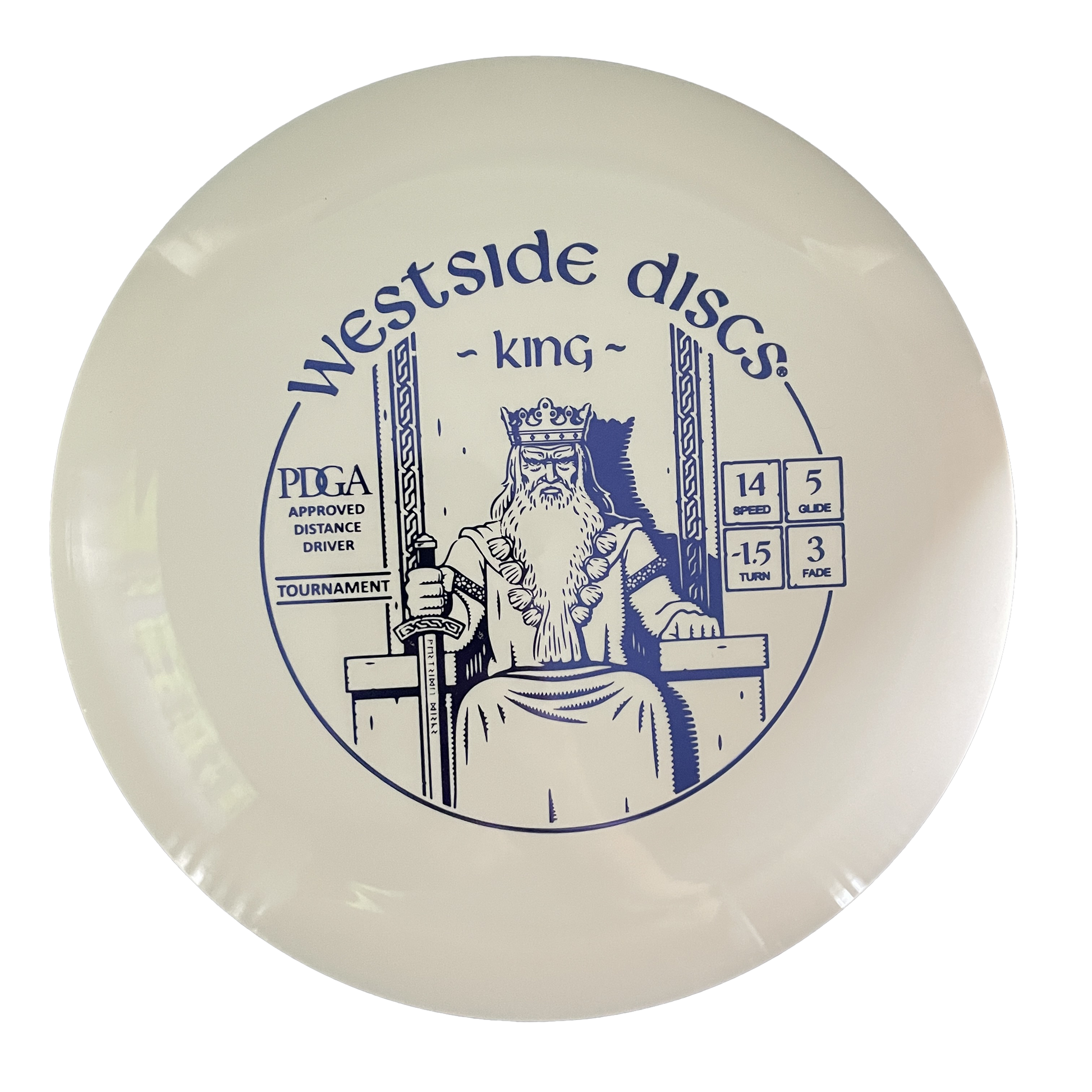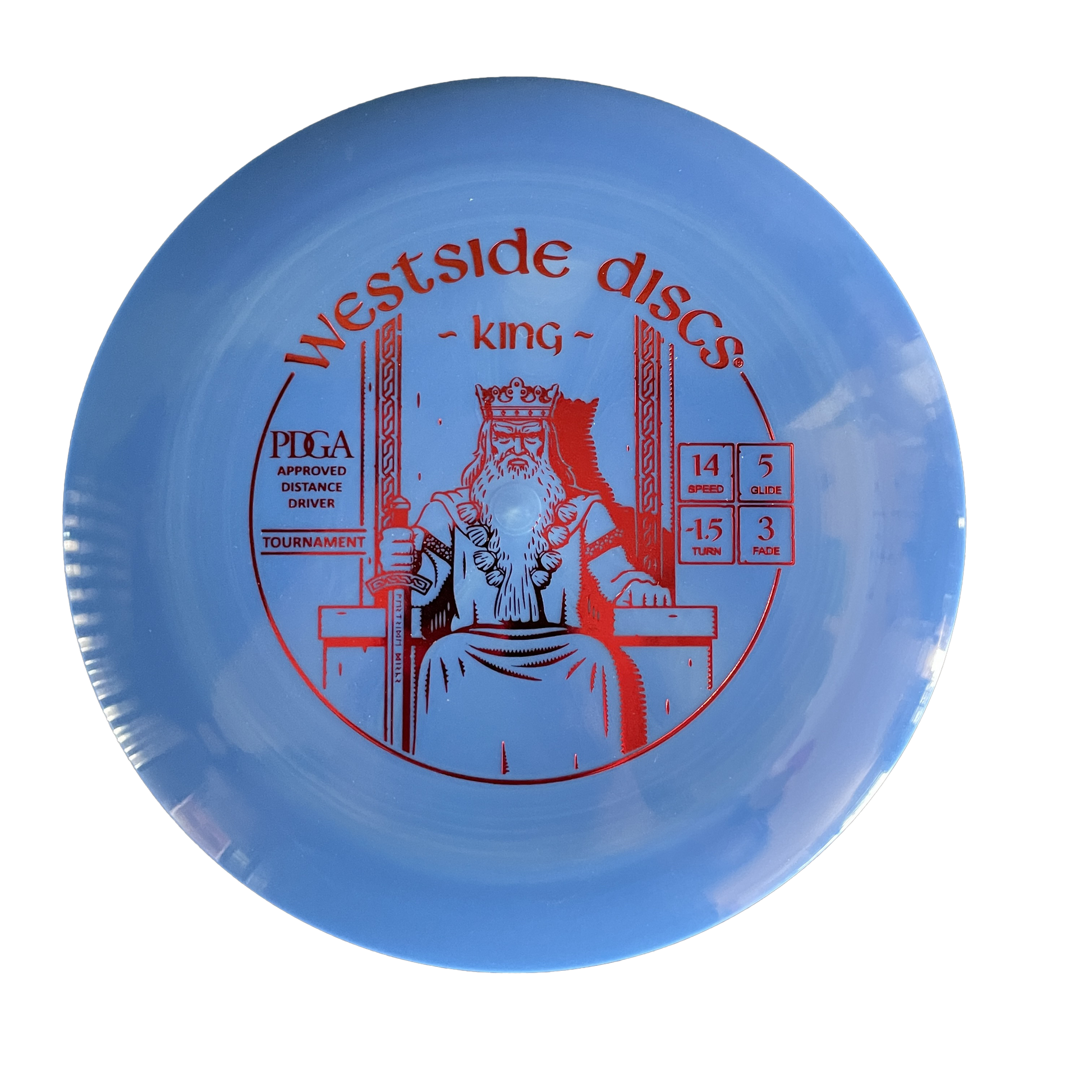Westside Discs most popular high-speed driver, the King is their fastest disc for all levels of players. The farthest flying disc in their line the King is designed to allow the average player to experience a long-distance flight. It has a good grip and a nice high dome. It traps the air and rides on it like you have never seen before. For professional players the King will be your longest flying disc and roller in your bag. For lower speed arms this will finally give you that full flight you always wanted on the course